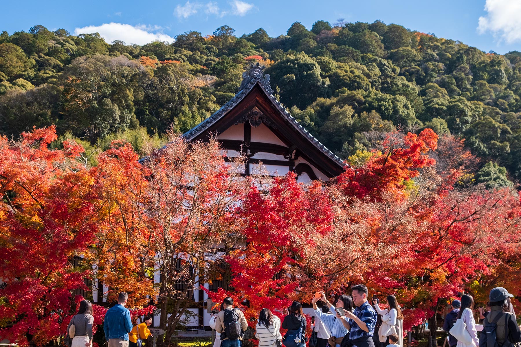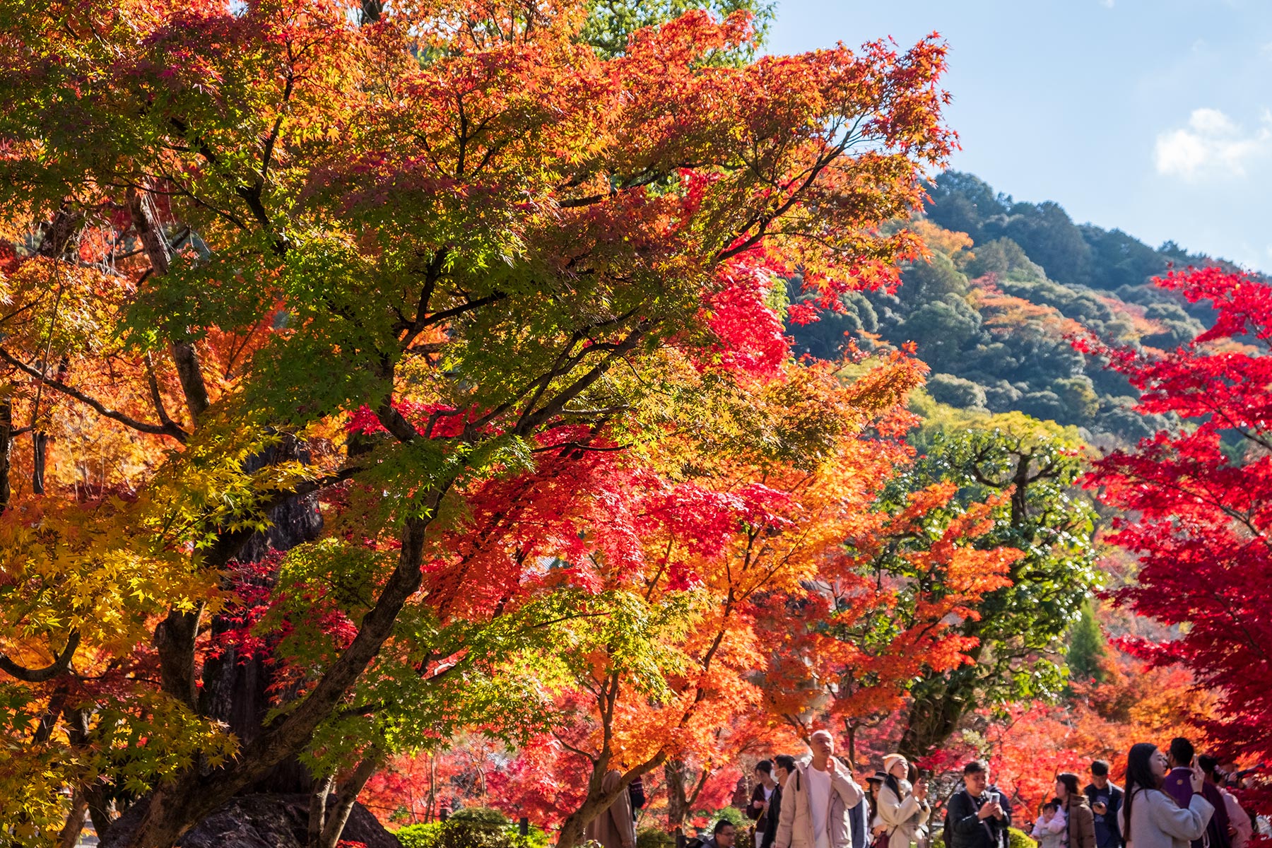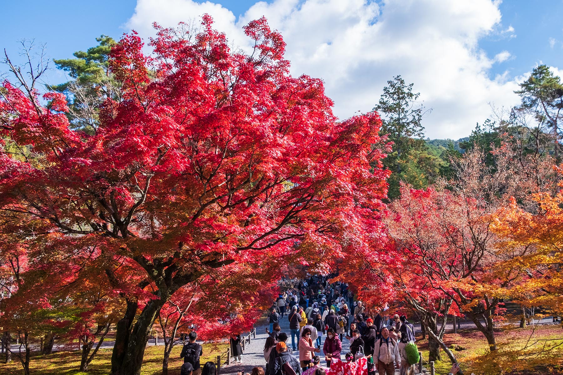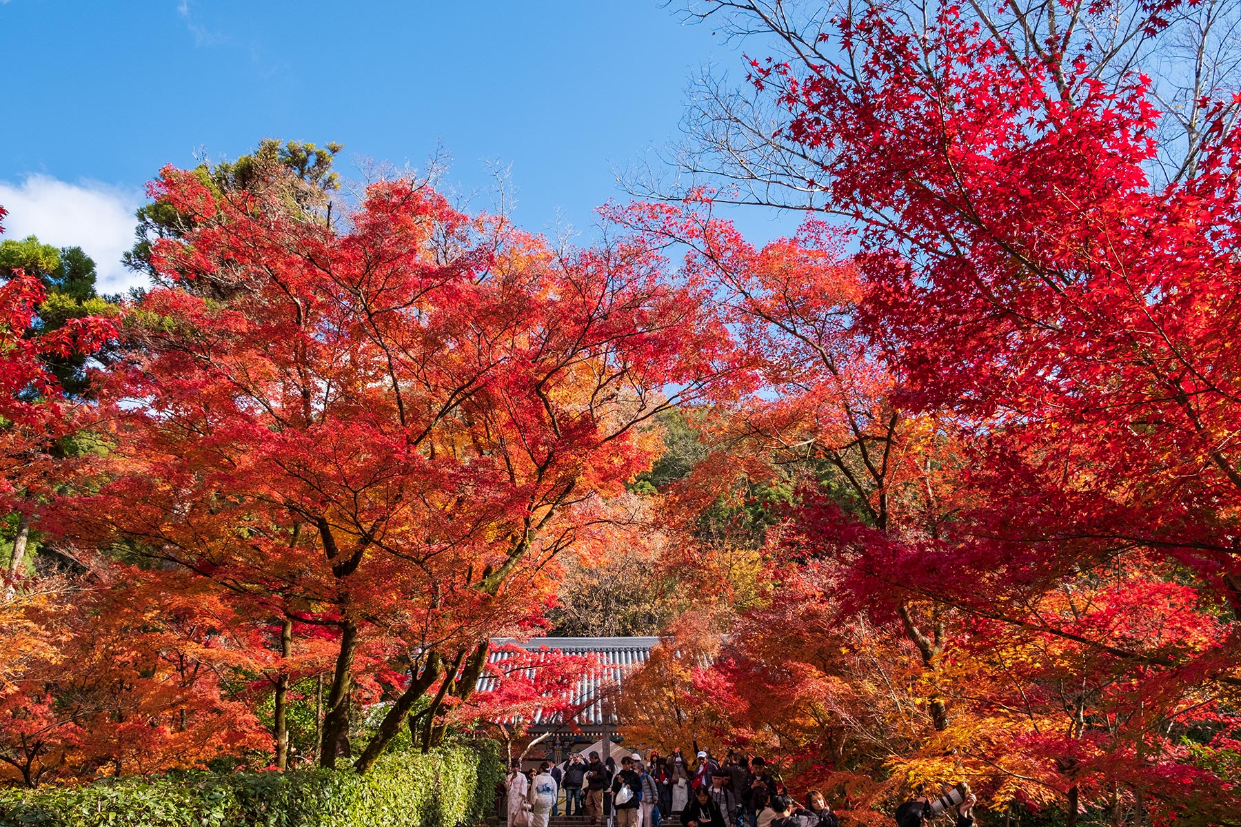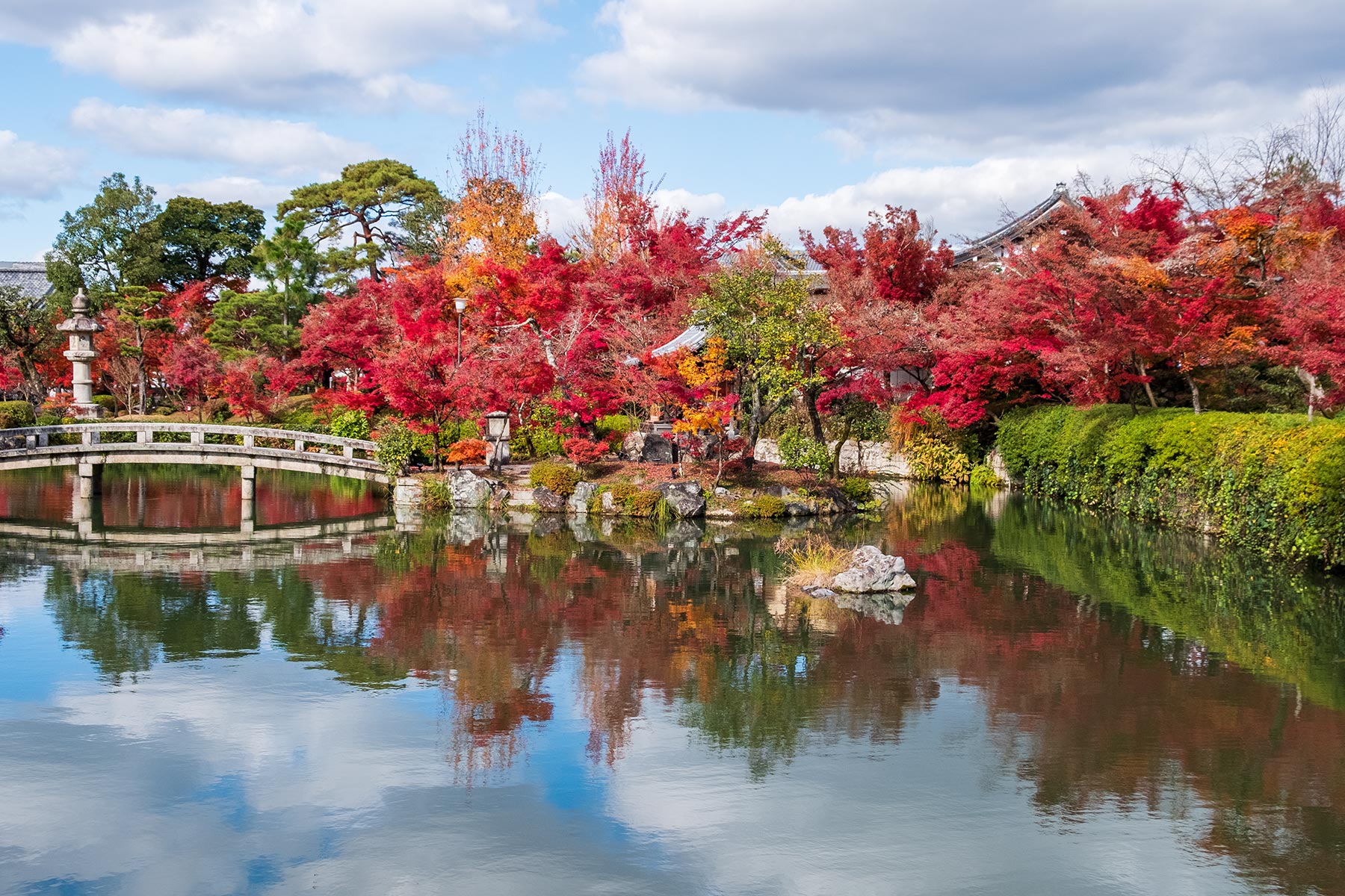 Der Eikando Tempel, ein buddhistischer Tempel im Osten von Kyoto, ist vor allem bekannt für seine Herbstfarben. Die beste Zeit ist gegen Ende November, Anfang Dezember. Da sich aber je nach Wetterlage der Peak zur Beobachtung des farbenprächtigen Herbstlaubes ändern kann, ist es ratsam sich auf Kalendern zu informieren, die es für ganz Japan gibt.